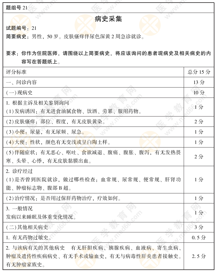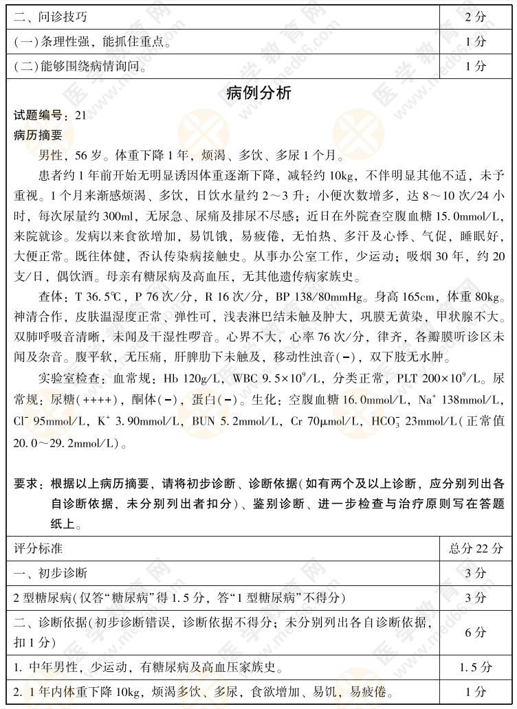 2022年臨床醫(yī)師病史采集+病例分析考前模擬卷第21套(含評(píng)分標(biāo)準(zhǔn))