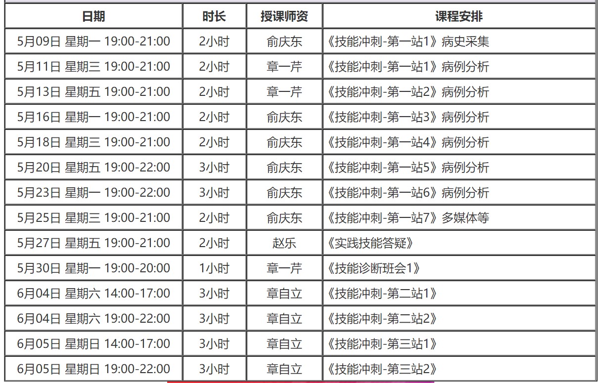 授課內(nèi)容:采用實(shí)操帶學(xué)的模式進(jìn)行體格檢查教學(xué)指導(dǎo),讓考生避免錯(cuò)誤手法,熟悉實(shí)際考場(chǎng)拿分考點(diǎn)。點(diǎn)擊查看詳細(xì)課表>>