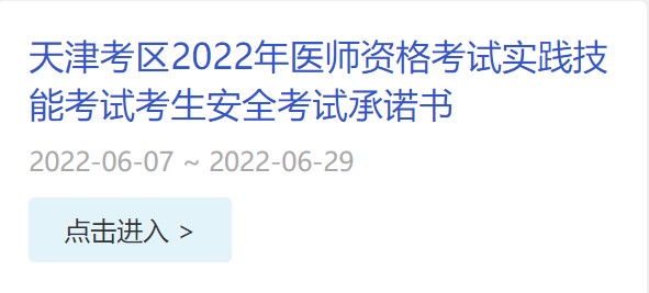 天津考區(qū)2022年醫(yī)師資格考試實踐技能考試安全考試承諾書填寫地址如下,醫(yī)學(xué)教育網(wǎng)編輯為您整理。