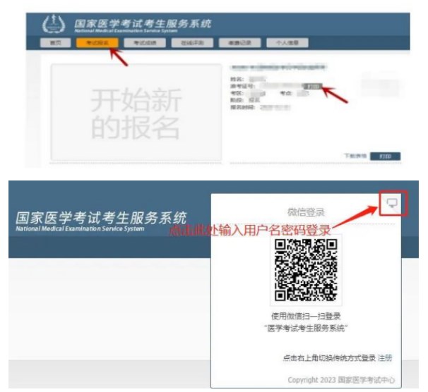 準考證于2023年11月3日15:00開始打印,登陸國家醫(yī)學(xué)考試網(wǎng)(https://www.nmec.org.cn/),進入“考生服務(wù)”,掃描二維碼或輸入用戶名和密碼,進入系統(tǒng)自行下載、打印準考證。具體考試時間和地址,以準考證通知為準。請考生提前打印準考證,認真閱讀準考證中推送的信息,準考證內(nèi)未顯示完全的考點信息可在網(wǎng)頁版查看。