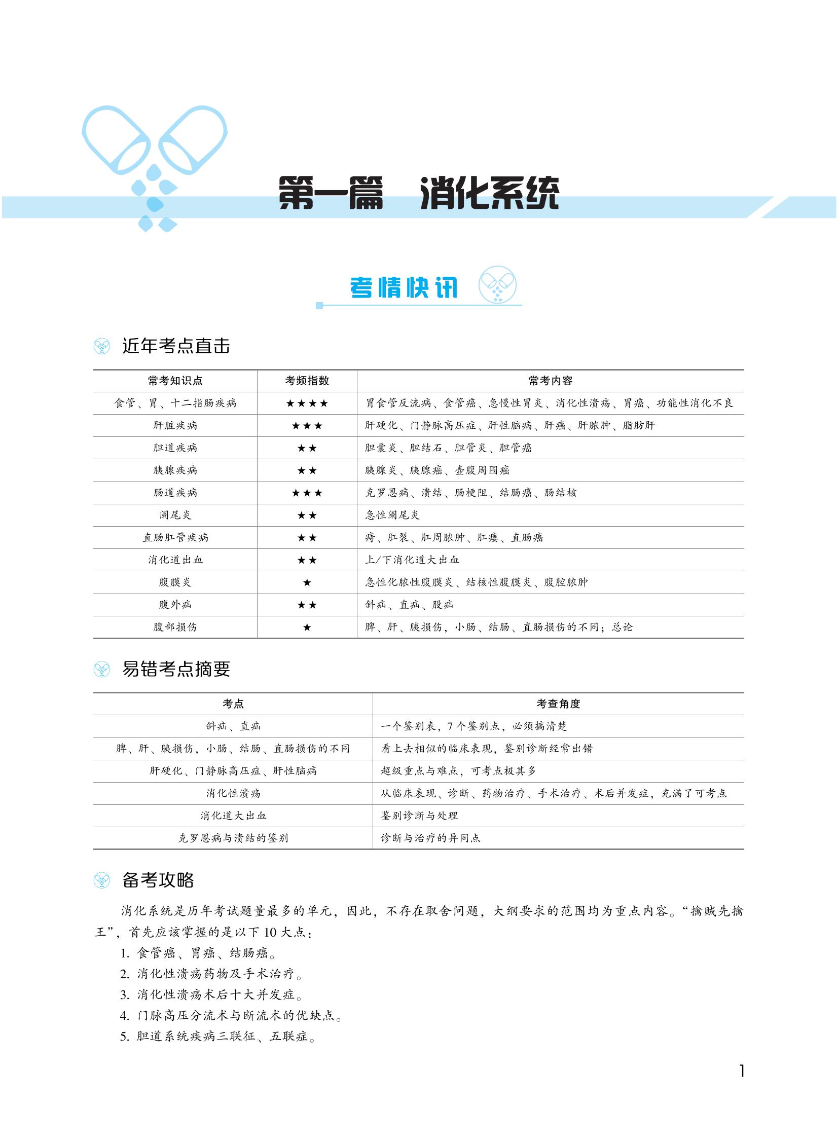 (一)第一權(quán)重科目——消化系統(tǒng),不存在重點非重點的問題,都是重點?!暗孟叩锰煜隆?。因此,消化系統(tǒng)需逐字復(fù)習(xí),不能有任何含糊。幾乎每一句話都可能成為考點。