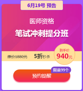 - · 【618年中學(xué)習(xí)盛典】臨床執(zhí)業(yè)醫(yī)師《考前密訓(xùn)班》立省276元!