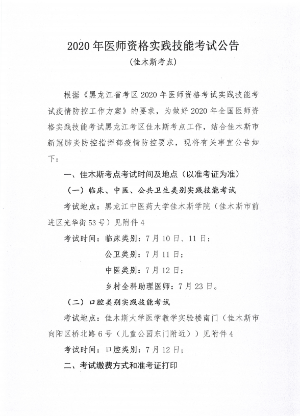2020年佳木斯考點臨床執(zhí)業(yè)醫(yī)師實踐技能考試考前重要事項說明