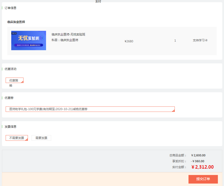 第三步:提交訂單即可,最終的價格為原價的9折-學費紅包的價格,課程購買后即可登錄我的網(wǎng)校我的家學習啦,2021年課程贈送2020年輔導。