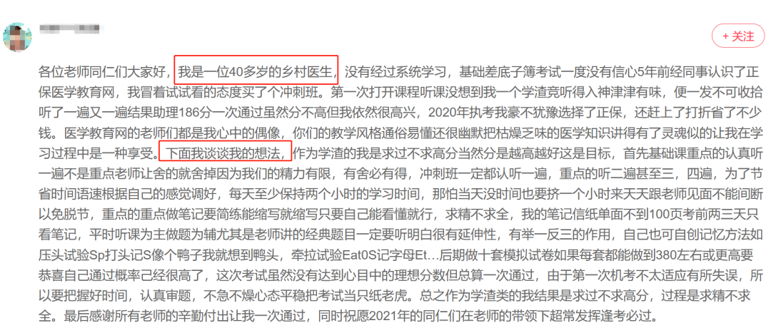 最后,咱們醫(yī)學(xué)教育網(wǎng)的有獎?wù)魑睦?,小編發(fā)現(xiàn)了2篇超級感人同時很有借鑒經(jīng)驗(yàn)的學(xué)員經(jīng)歷,發(fā)給大家!(小編看的淚目)