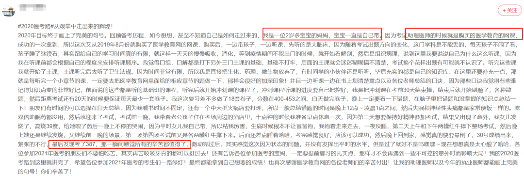 以下為內(nèi)容原文:#2020醫(yī)考路#從艱辛中走出來的輝煌!2020年目標(biāo)終于畫上了完美的句號。