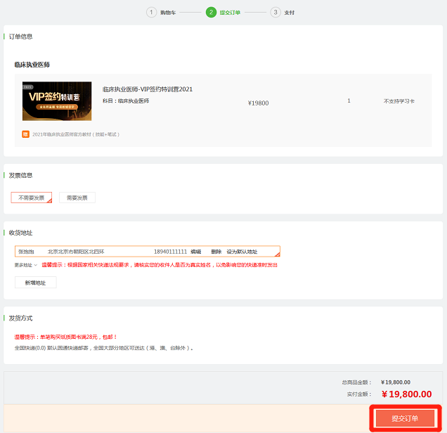 第二步:在訂單頁確認(rèn)無誤后,點(diǎn)擊“提交訂單”;