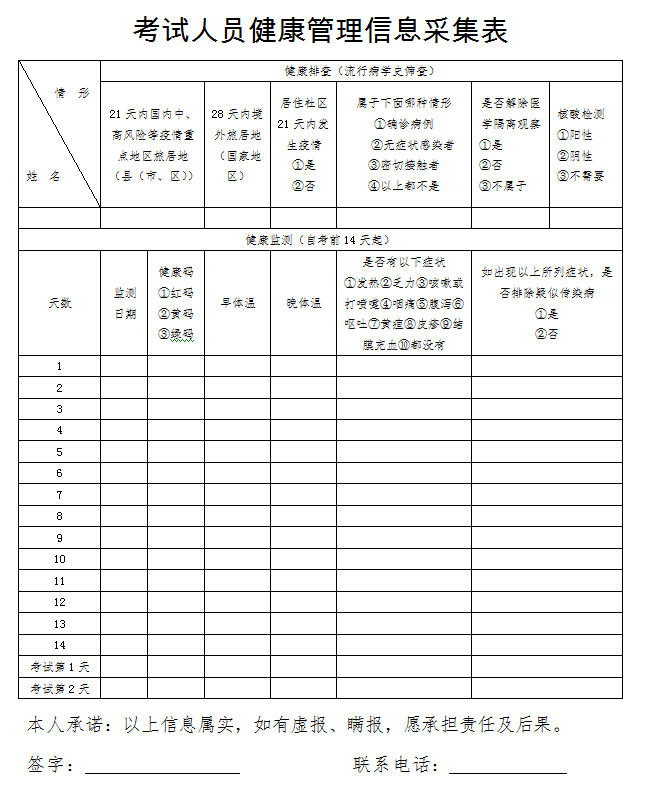 2021年臨床執(zhí)業(yè)醫(yī)師實(shí)踐技能考試考試人員健康管理信息采集表