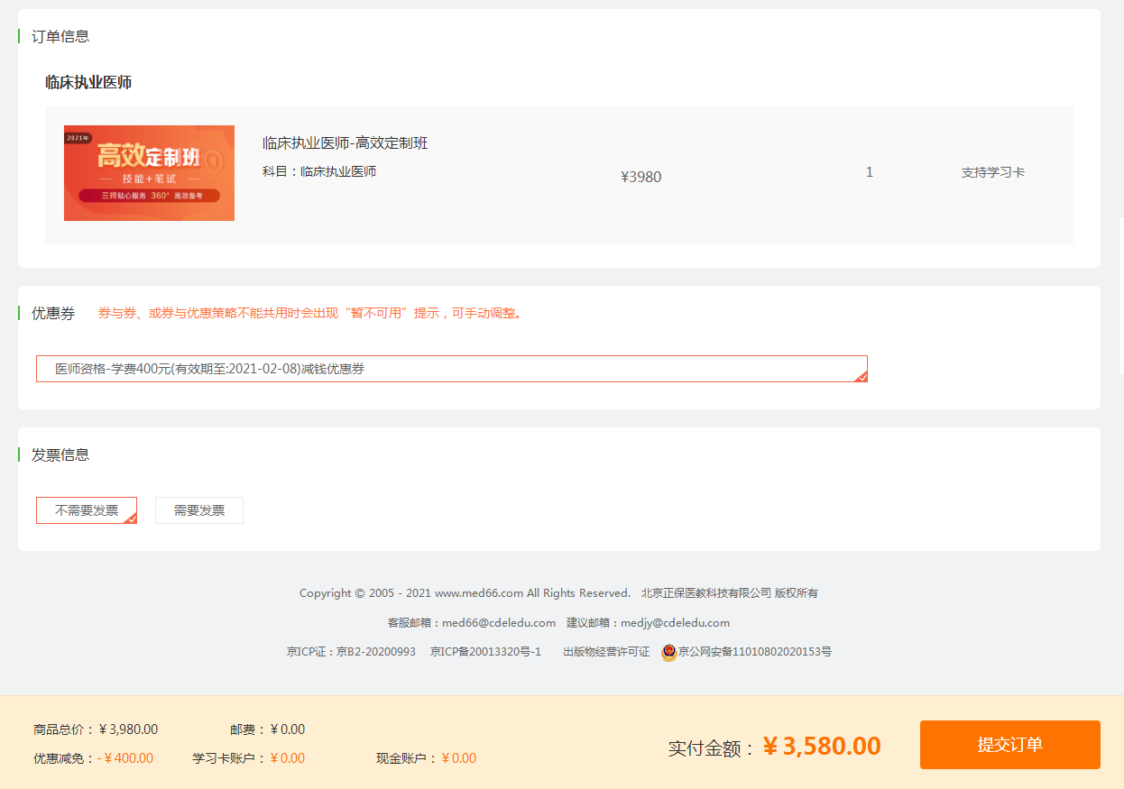 不搞套路!2021年臨床執(zhí)業(yè)醫(yī)師高效定制班直降797元!千萬(wàn)不要錯(cuò)過(guò)了!這里送你一份優(yōu)惠購(gòu)課攻略!