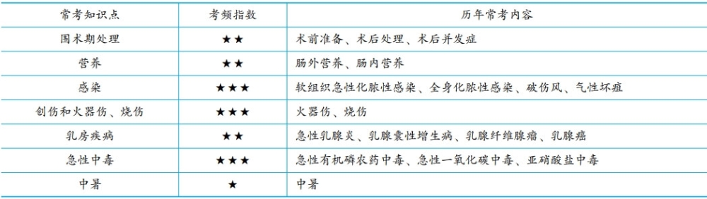其他這部分內(nèi)容比較雜,但試題不難,核心考點(diǎn)比較明確。zui容易命題、zui該重點(diǎn)掌握的得分點(diǎn)包括——乳腺疾病、燒傷、外科感染、中毒、圍術(shù)期處理。