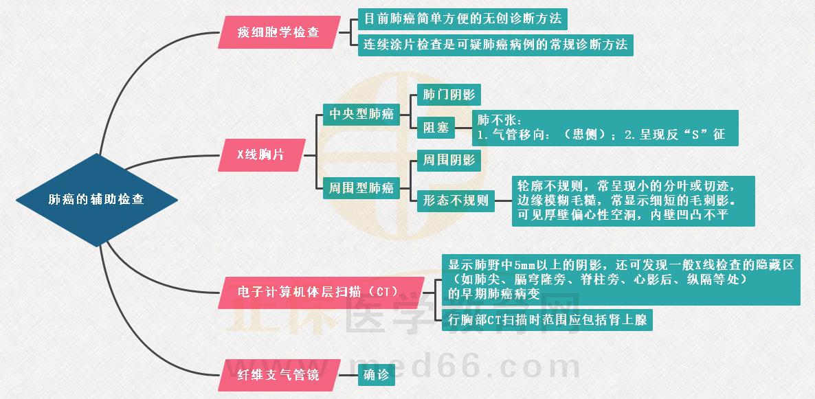以上是小編為大家整理的“【專業(yè)原創(chuàng)】臨床執(zhí)業(yè)醫(yī)師筆試沖刺肺癌重點記憶口訣及思維導圖”的相關內容,希望以上內容對廣大臨床執(zhí)業(yè)醫(yī)師考生有幫助!更多臨床執(zhí)業(yè)醫(yī)師考試相關資訊請關注醫(yī)學教育網(wǎng)!