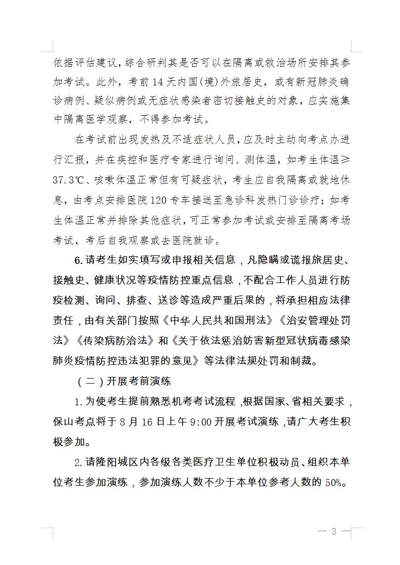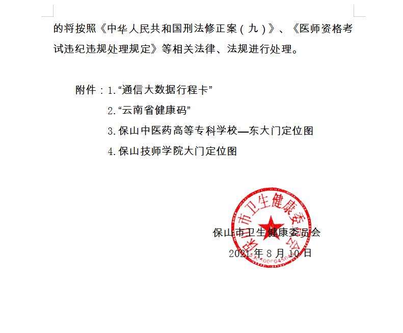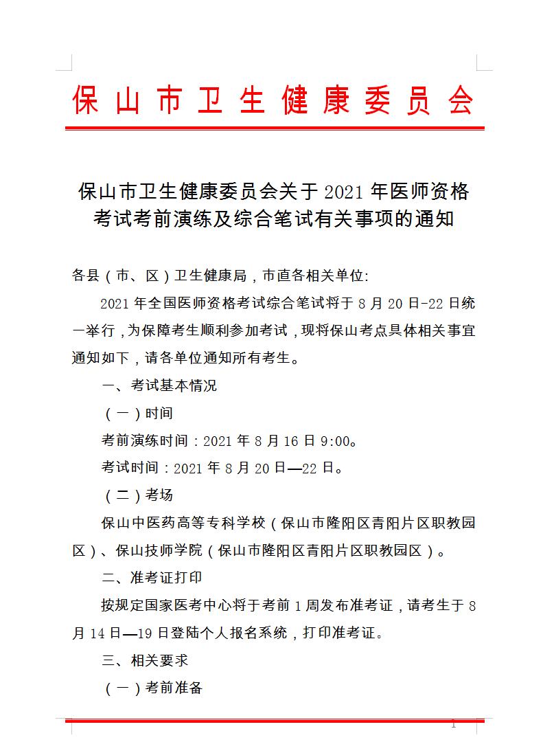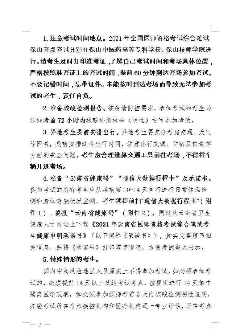 - · 云南省保山市2021年臨床執(zhí)業(yè)醫(yī)師二試考前注意事項(xiàng)、防疫須知