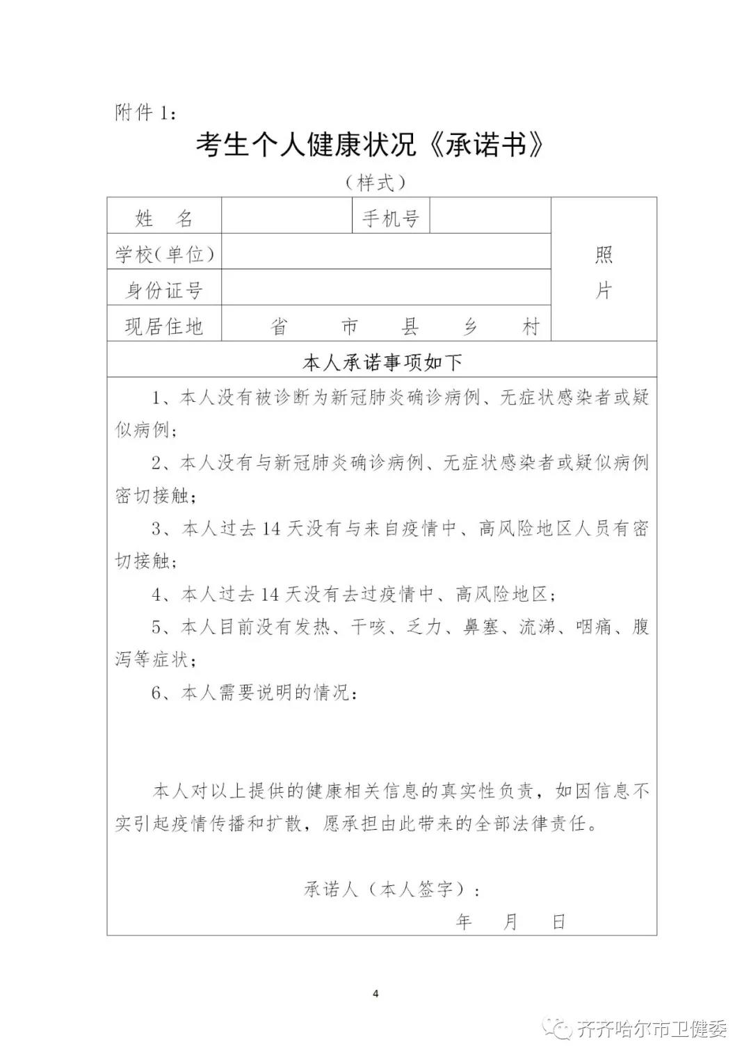 1.目前在齊齊哈爾的考生原則上不得離開本市。從異地返回齊齊哈爾市參加考試的考生,原則上應(yīng)在考前14天返回考試地,請(qǐng)尚在外地的齊齊哈爾市考點(diǎn)考生及時(shí)返齊。從境外、國(guó)內(nèi)疫情中風(fēng)險(xiǎn)及以上地區(qū)等返齊的考生,須按我市疫情防控要求落實(shí)相關(guān)管控措施后,無(wú)異常方可參加考試。