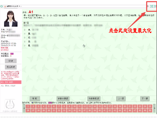 國家醫(yī)考中心回復(fù):試題不能調(diào)整大小,建議戴眼鏡考試。但根據(jù)考生反饋,真正考試中的系統(tǒng)是一個(gè)網(wǎng)頁,默認(rèn)打開不是最大化,考生可以點(diǎn)擊瀏覽器右上角最大化按鈕調(diào)整(可以放大一點(diǎn)點(diǎn))。如果實(shí)在看不清可以嘗試能否使用鍵盤“Ctrl和+”放大網(wǎng)頁比例或者調(diào)整電腦分辨率,必要時(shí)也可以舉手示意監(jiān)考老師。但還是建議考生考試的時(shí)候戴上“適合自己的眼鏡”更放心哦~