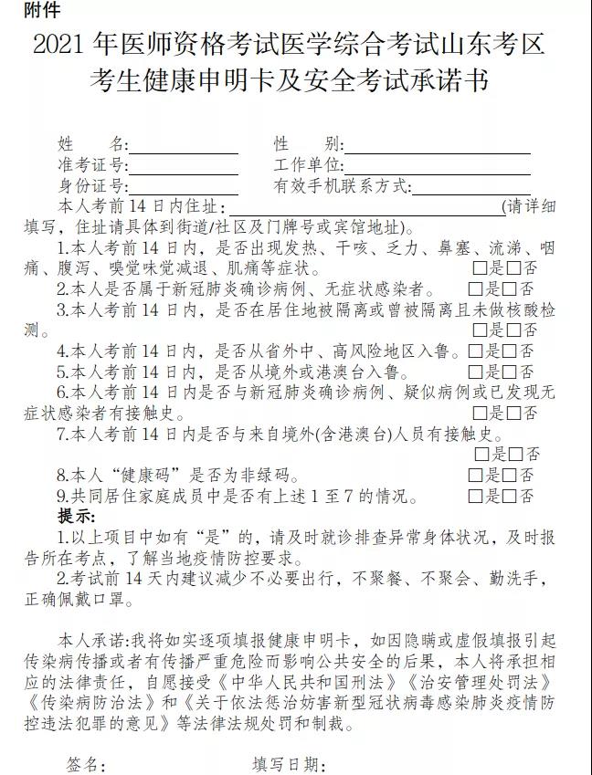 快捷查詢?nèi)肟冢喝珖?021醫(yī)師資格考試考生健康承諾書下載匯總