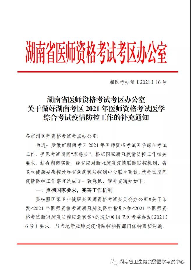 湖南省2021年臨床執(zhí)業(yè)醫(yī)師綜合考試防疫補(bǔ)充通知