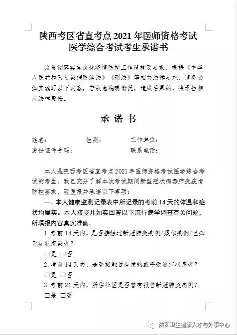陜西考區(qū)省直考點(diǎn)2021年醫(yī)師資格考試醫(yī)學(xué)綜合考試疫情防控考生告知書