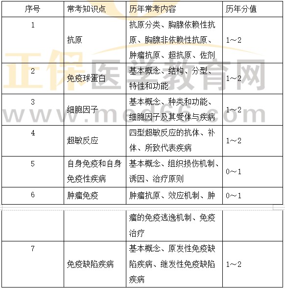 臨床執(zhí)業(yè)醫(yī)師綜合考試“醫(yī)學(xué)免疫學(xué)”歷年??伎键c(diǎn)梳理
