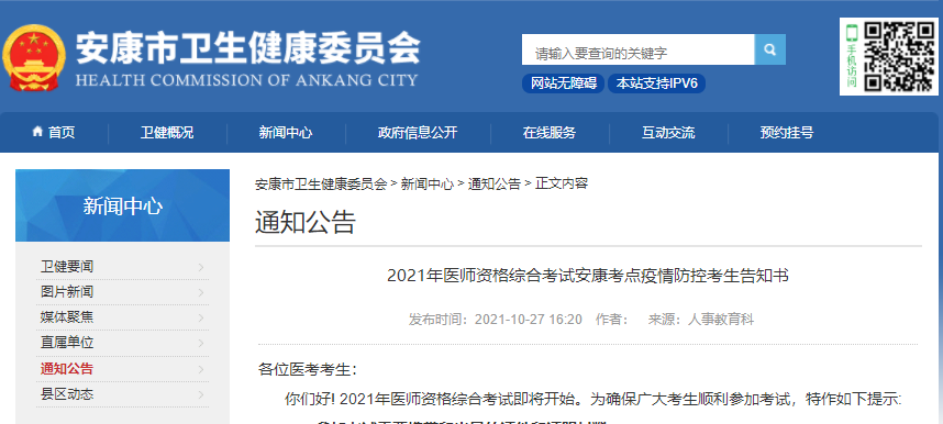 陜西省安康市衛(wèi)健委發(fā)布“陜西安康考點2021年醫(yī)師資格綜合考試安康考點疫情防控考生告知書”通知,為幫助參加2021年陜西考區(qū)安康考點市醫(yī)師資格考試的考生了解,在此醫(yī)學教育網小編為大家整理如下內容: