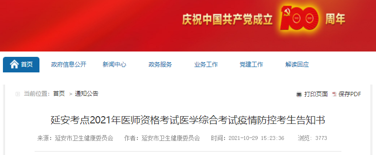 延安考點2021年醫(yī)師資格考試醫(yī)學綜合考試疫情防控考生告知書