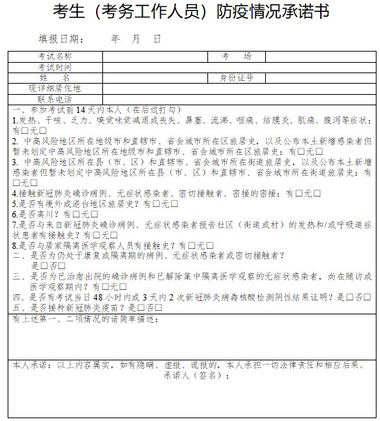附件下載: 考生防疫情況承諾書