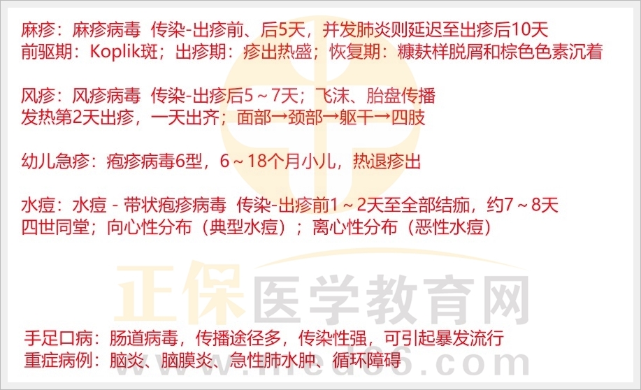 麻疹、風疹、幼兒急疹、水痘、手足口病考試重點: