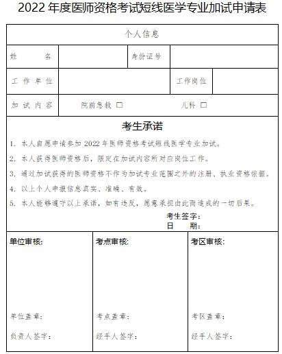 2022年度臨床執(zhí)業(yè)醫(yī)師資格考試短線醫(yī)學(xué)專業(yè)加試申請表