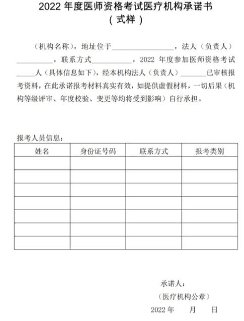 拉薩市2022年度醫(yī)師資格考試醫(yī)療機構(gòu)承諾書(式樣)