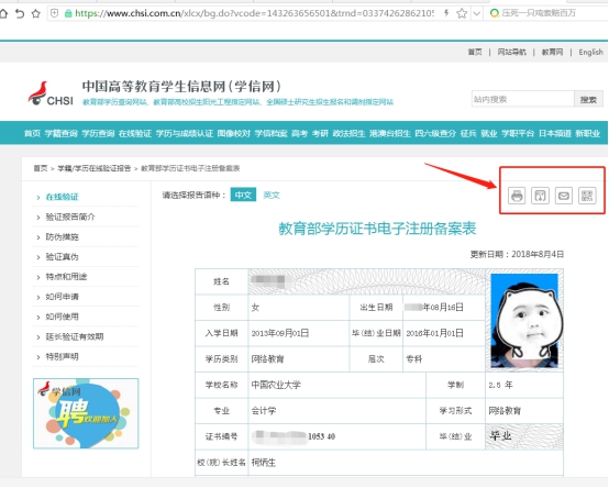 打印教育部學(xué)歷證書電子注冊(cè)備案表流程