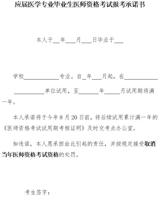 遼寧考區(qū)2022年應(yīng)屆醫(yī)學(xué)專業(yè)畢業(yè)生醫(yī)師資格考試報考承諾書