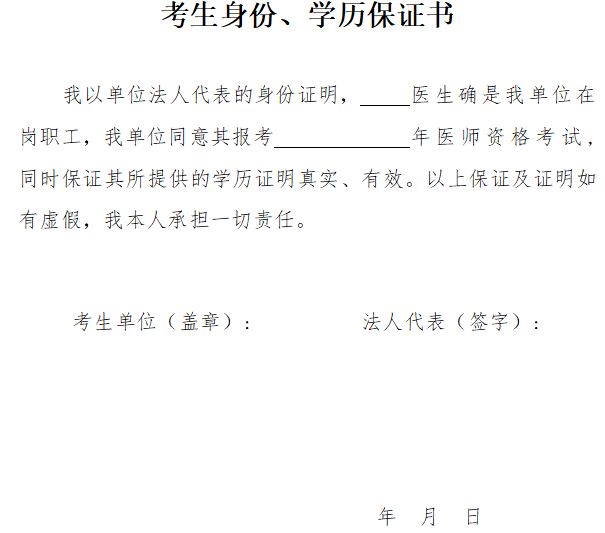2022年遼寧遼陽(yáng)考點(diǎn)醫(yī)師資格報(bào)名考生身份、學(xué)歷保證書(shū)