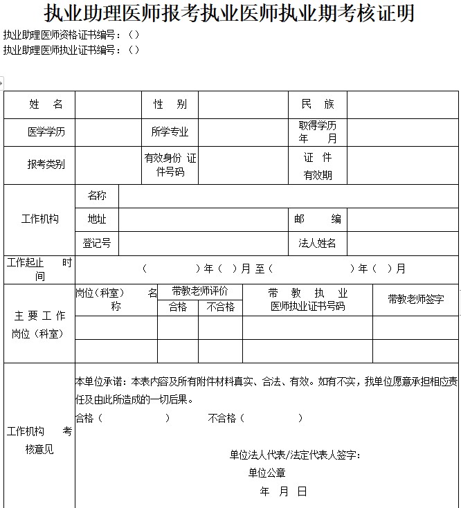 執(zhí)業(yè)助理醫(yī)師報(bào)考執(zhí)業(yè)醫(yī)師執(zhí)業(yè)期考核證明模板下載