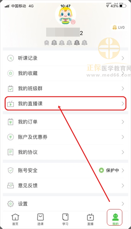 5.直播開始的前5分鐘,會開放直播入口,用戶可點擊底部菜單【我的】,進入【我的直播課】,查看您預(yù)約的直播課程,立即進入直播。