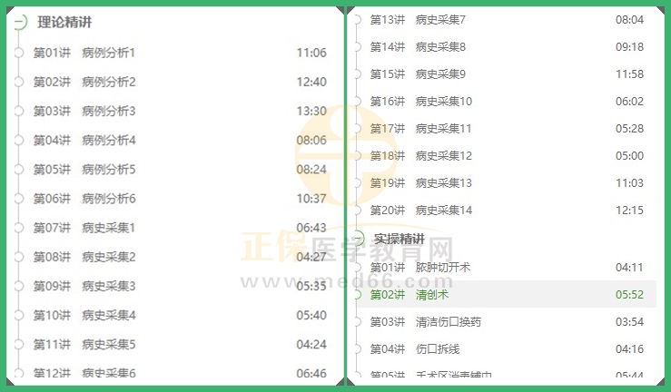 實(shí)操視頻+理論視頻,共計(jì)25個(gè)視頻,涵蓋病例分析、病史采集、技能實(shí)操重要考點(diǎn)精講。