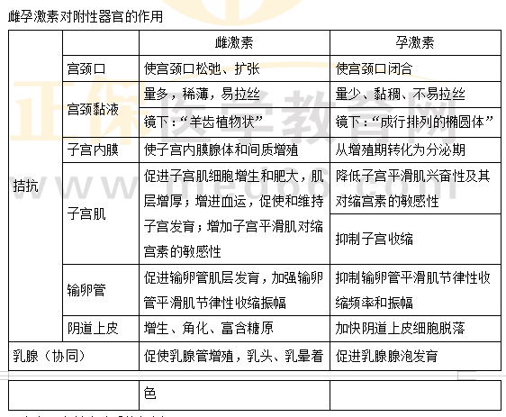 雌孕激素對附性器官的作用