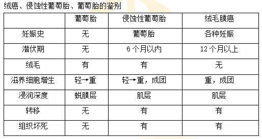絨癌、侵蝕性葡萄胎、葡萄胎的鑒別