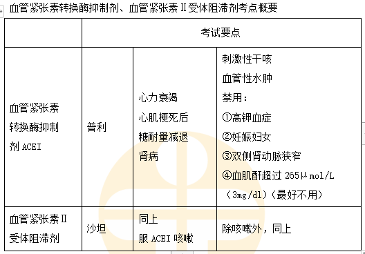 血管緊張素轉(zhuǎn)換酶抑制劑、血管緊張素Ⅱ受體阻滯劑考點概要