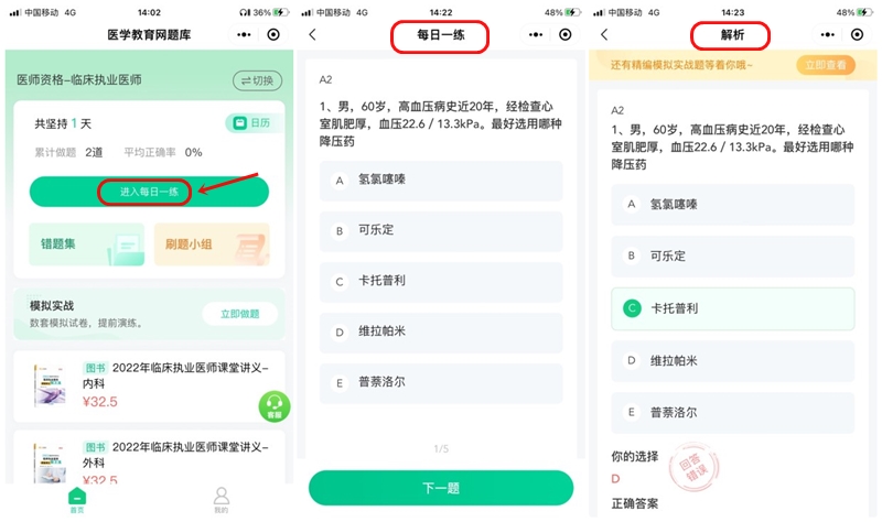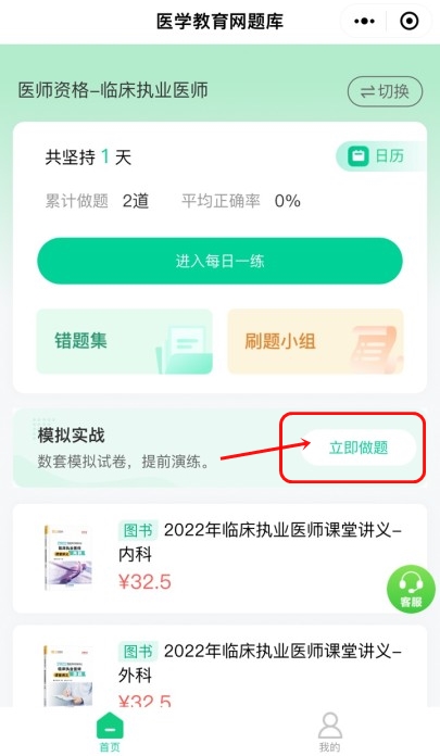 1.請在醫(yī)學(xué)教育網(wǎng)題庫小程序內(nèi),進行查看和做題。