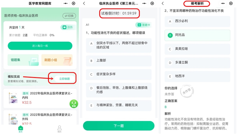 臨近考試,醫(yī)學(xué)教育網(wǎng)教研團隊精心研發(fā)臨床執(zhí)業(yè)醫(yī)師考前《仿真試卷》題庫備考產(chǎn)品,考前刷題人手必備!解鎖三套卷,合計1800題,限時5折,低至20元!