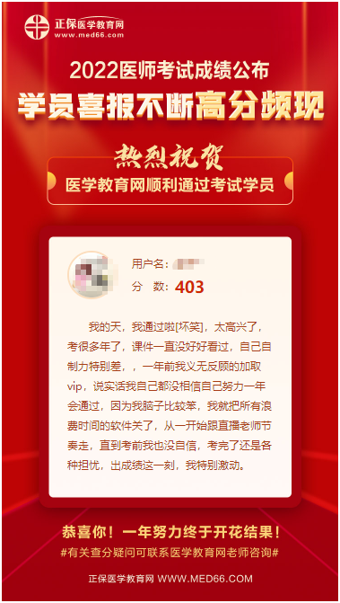 2022醫(yī)師資格考試成績(jī)終于塵埃落定,你查分了嗎?(快速查分入口>>),網(wǎng)校自成績(jī)公布后收到了來(lái)自全國(guó)各地學(xué)員的好評(píng)!以下來(lái)自一位跟著網(wǎng)校老師學(xué)習(xí)的學(xué)員的感謝!