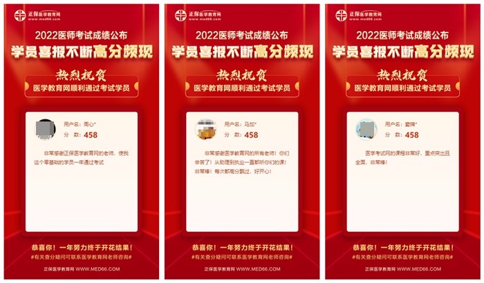 2022醫(yī)師資格考試成績(jī)終于塵埃落定,你查分了嗎?(快速查分入口>>),網(wǎng)校自成績(jī)公布后收到了來(lái)自全國(guó)各地學(xué)員的好評(píng)!以下來(lái)自三位醫(yī)師考到458分學(xué)員的感謝!