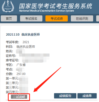 2.能看到成績后,如果考生符合參加二試規(guī)則,就會看到”二試說明“按鈕。