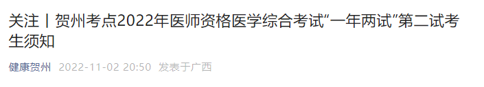 廣西賀州考點(diǎn)2022年臨床執(zhí)業(yè)醫(yī)師綜合考試“一年兩試”考前疫情防控通知