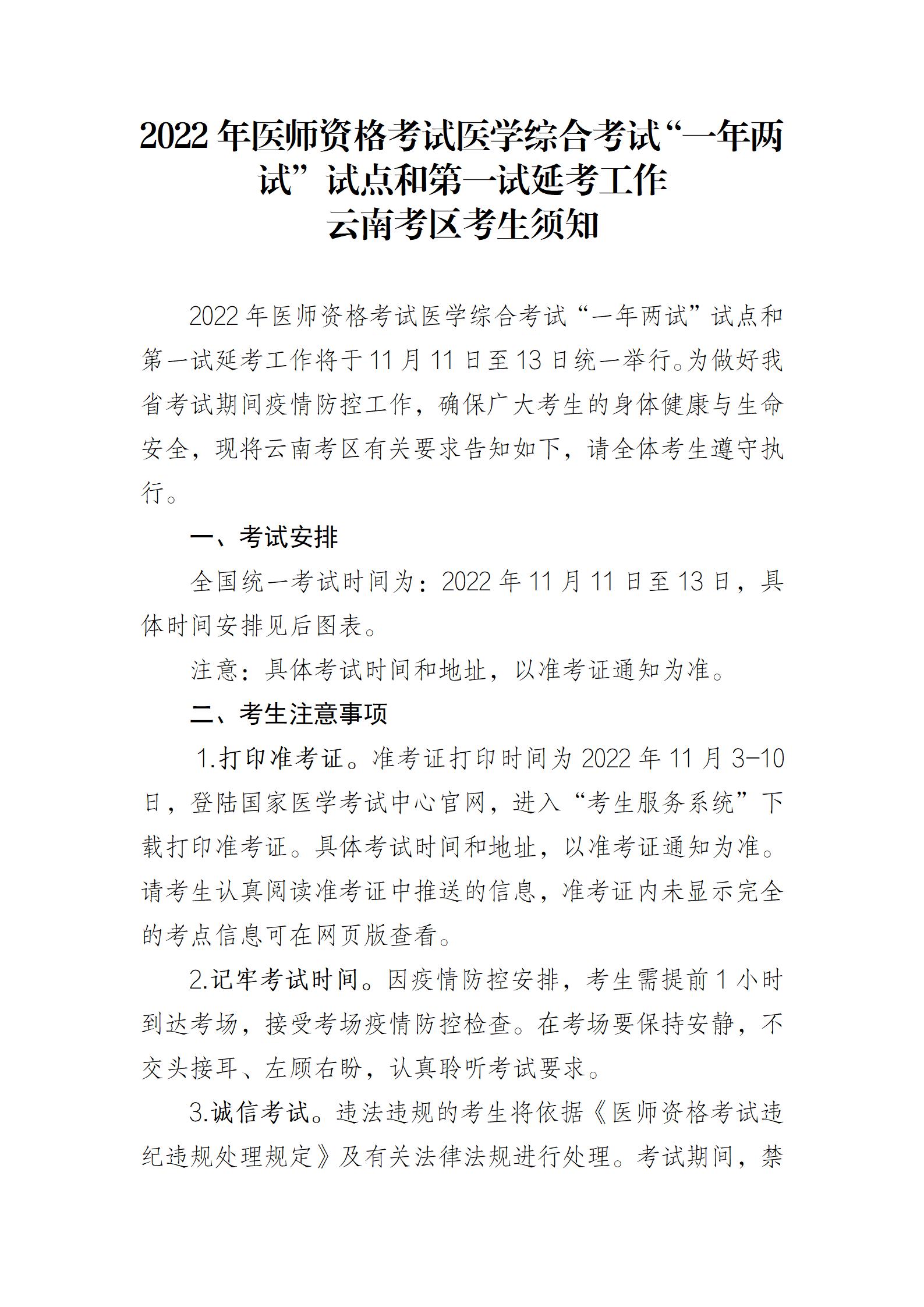 2022年臨床執(zhí)業(yè)醫(yī)師綜合考試“一年兩試”試點和第一試延考工作云南考區(qū)考生須知