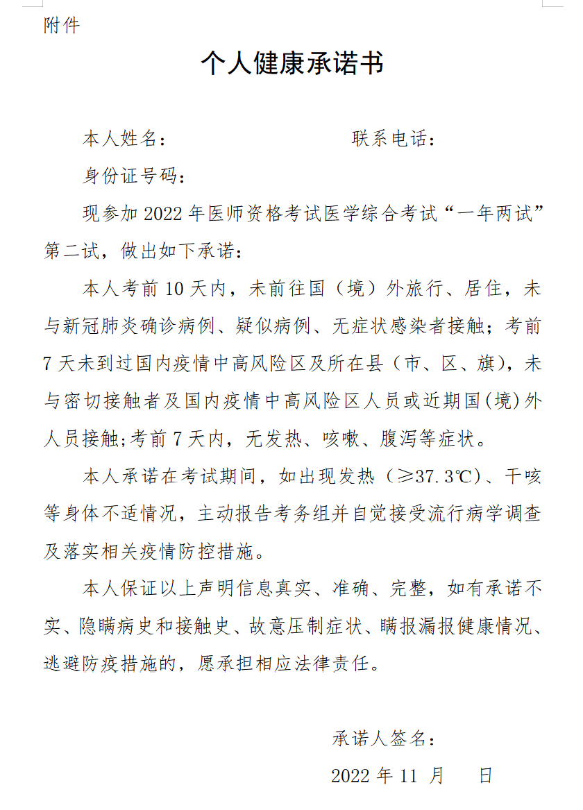 【下載打印】各地2022年醫(yī)考二試/延考《健康承諾書/健康監(jiān)測表》匯總!