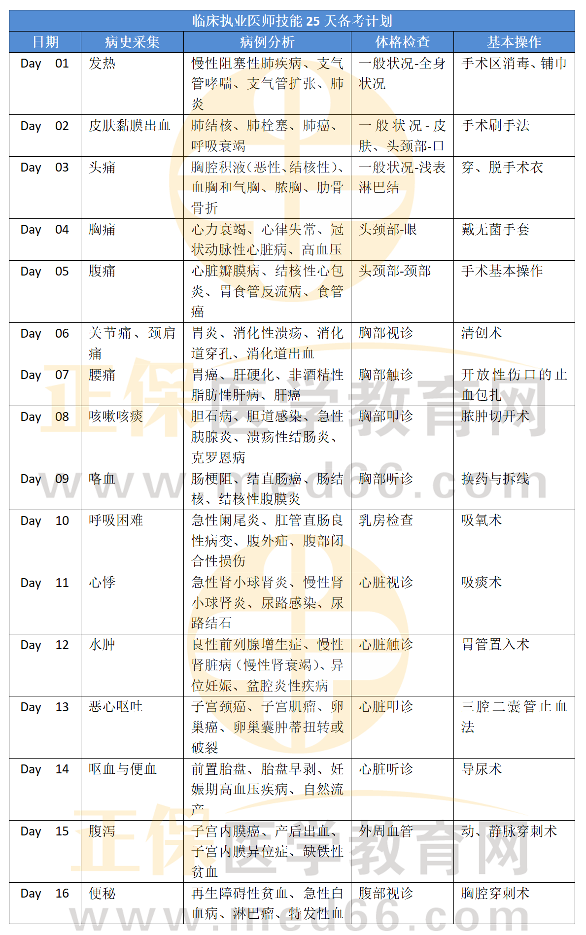 2023年臨床執(zhí)業(yè)醫(yī)師實(shí)踐技能考試已經(jīng)進(jìn)入倒計(jì)時(shí),如果是現(xiàn)在才開(kāi)始備考,各科目的復(fù)習(xí)時(shí)間如何分配?各科復(fù)習(xí)重點(diǎn)如何把握?醫(yī)學(xué)教育網(wǎng)編輯為您準(zhǔn)備了專(zhuān)業(yè)備考階段25天學(xué)習(xí)計(jì)劃!