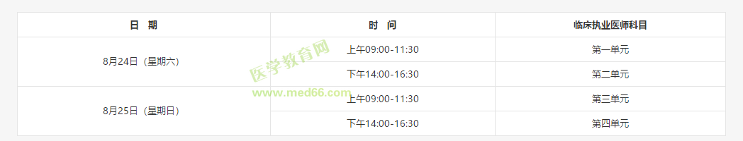 二、2019年臨床執(zhí)業(yè)醫(yī)師醫(yī)學(xué)綜合筆試全國(guó)統(tǒng)一考試時(shí)間為8月24日和25日: