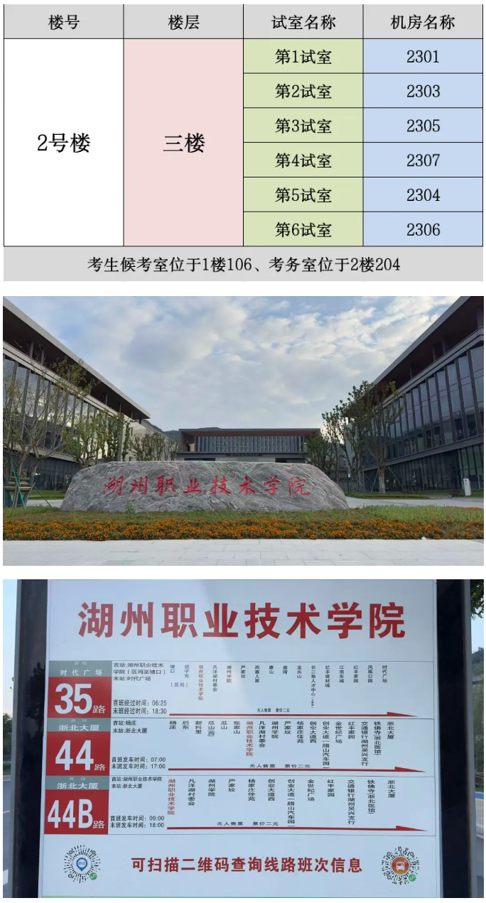 1.二試考場位于湖州職業(yè)技術(shù)學(xué)院新校區(qū)2號樓繼續(xù)教育學(xué)院三樓(湖州市創(chuàng)業(yè)大道3999號北門進),考生及車輛憑準考證進入校園,需服從保安指揮,按要求停車。