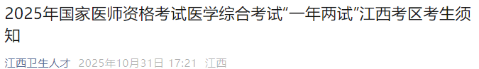 江西省2025年臨床執(zhí)業(yè)醫(yī)師“一年兩試”考生速看考前提醒!