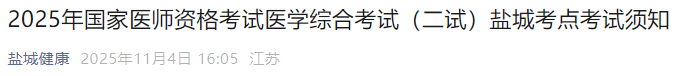 江蘇鹽城2025年臨床執(zhí)業(yè)醫(yī)師“一年兩試”考場(chǎng)安排|注意事項(xiàng)